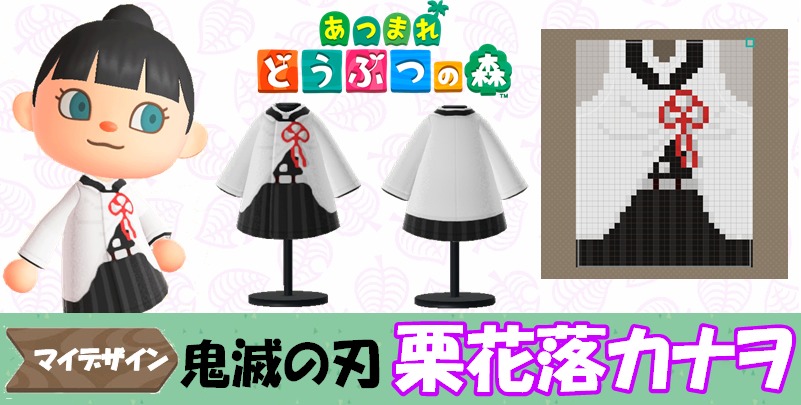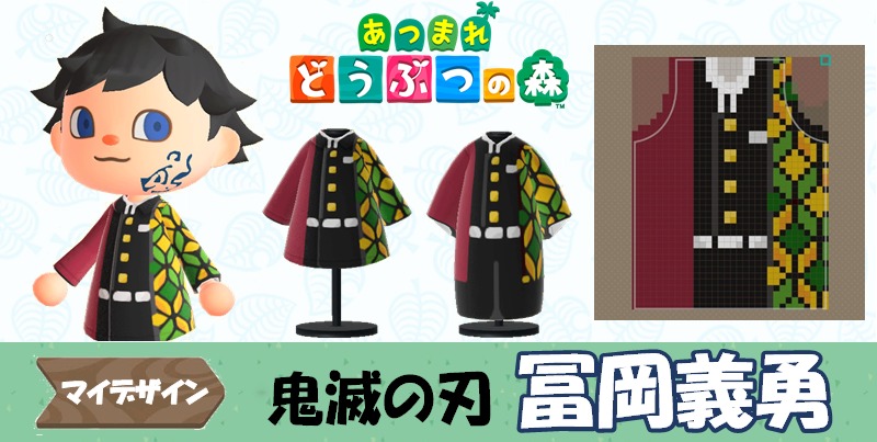 10位に入ったのは、超人気『鬼滅の刃』に登場する恋柱・甘露寺密璃風のマイデザインでした! 甘露寺と言えば、カラフルな髪の毛と大きく露出した胸元が特徴ですけど、『あつ森』のマイデザインパーツにはそれをそのまま表現するほどの柔軟性はない!! そこでたっちー先生は……なんとドット絵の範囲内で豊満な胸も再現www この完成度を実現しましたwww