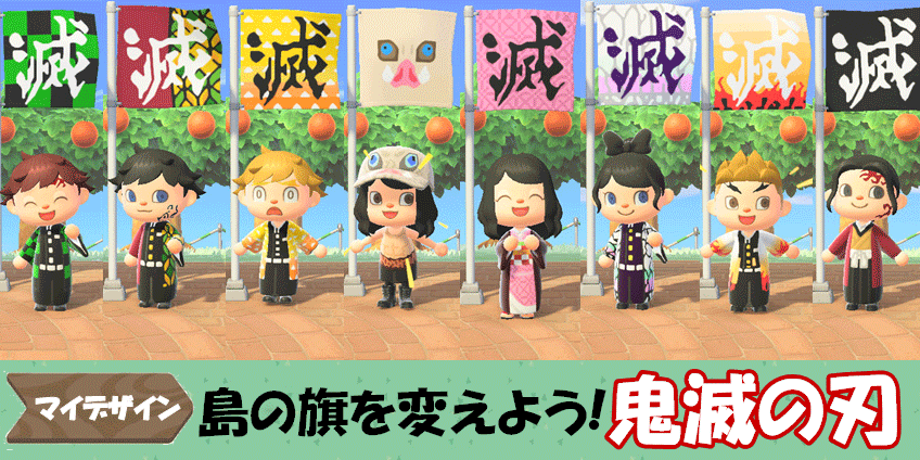 第7位は、言ってみればマイデザインの応用編となる“島の旗の変更”でした! こちらも『鬼滅の刃』風の旗を作れるとあって、多くの人が参考にしてくれたようです。たっちー先生のこだわりは、↑こちらのサムネ画像ww ポーズも表情も、それぞれのキャラに合わせて撮影しているという徹底ぶりでしたw