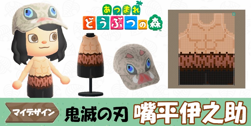 第9位も『鬼滅の刃』から。大塚角満がイチオシの伊之助のマイデザインです!! 伊之助と言えばもちろん、イノシシの被り物が最大の特徴。しかしもちろん、そんなものは『あつ森』のデザインパーツには存在しません。そこでたっちー先生は……なんと帽子にイノシシの模様を描き、あの被り物を表現!! 訪れた読者の方々も、「そんな手があったか!!」、「この表現力はスゴいです!!」と絶賛の作品となりましたw