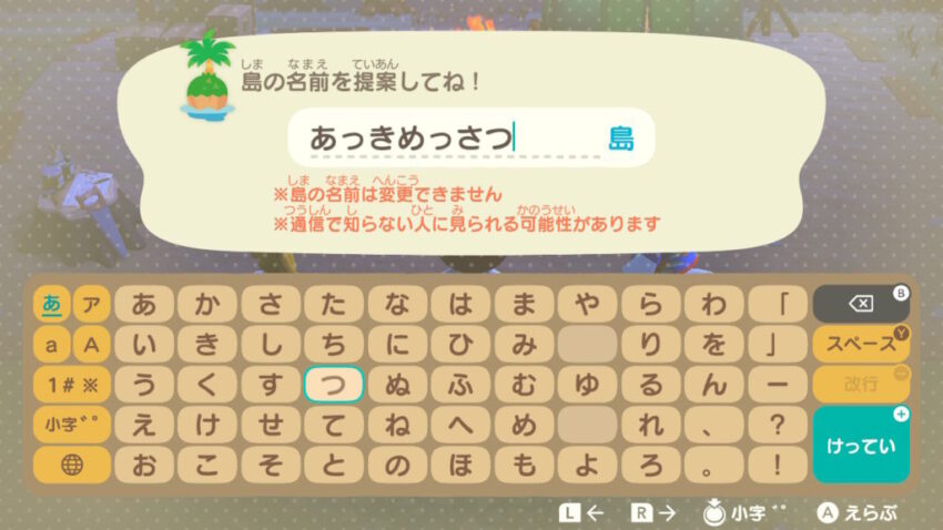 肝心かなめの島の名前も、当然のごとく一度決めたら変えることはできない。あまり恥ずかしい名前を付けると、自分の名前と同様にのちのち後悔する可能性があるので、熟考しよう!