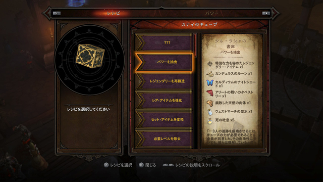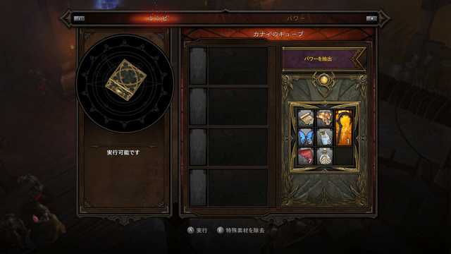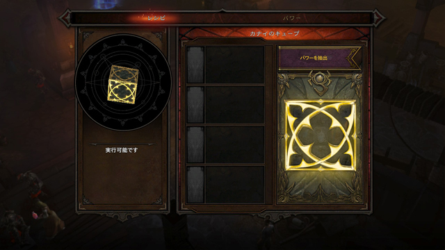 カナイのキューブのメニューが開く。ここで“パワーを抽出”を選択。