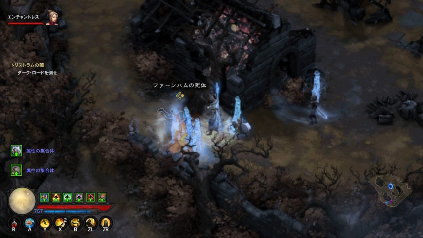 “魔女の薬”が落ちるので、これを持ってポータル近くで倒れている数体の死体を調べてみよう。その中に“ファーレンハムの死体”があるのでチェックすると……。