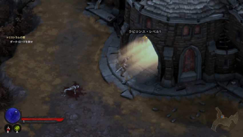 この生まれたばかりのキャラをいっさい育てず(装備は身に着けても大丈夫らしい)、そのままの状態でトリストラムの闇のラビリンスに侵入させる。