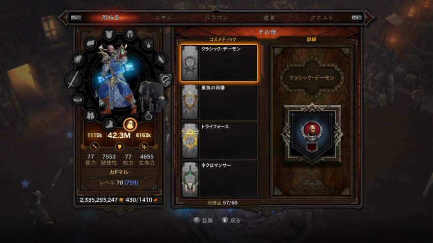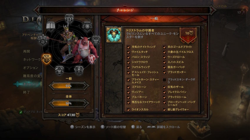 まず“クラシック・デーモン”のフレームは、“チャレンジ”の“一般”の中にある“トリストラムの守護者”をコンプリートしたらもらえました。これ、何かというと……!