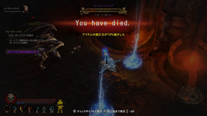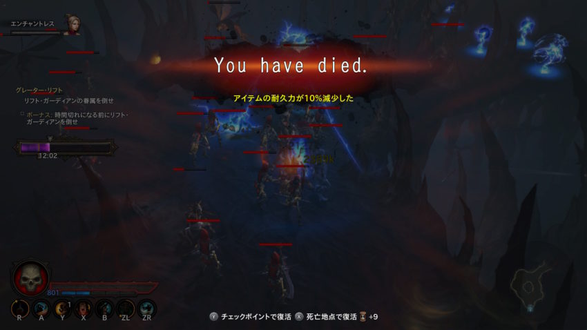 ちょっとでも油断すると、ほんの一瞬で屠り去られてしまうのは、さすがグレーターリフトの深奥といったところか。ザコのヒョロヒョロパンチやションベン弓矢がかすっただけで、アッと言う間に画面が葬式になってしまうのだ。……油断すんな、俺!! ここは、いまだかつて来たことすらなかった、『ディアブロ III』の深淵なんだぞ!!!