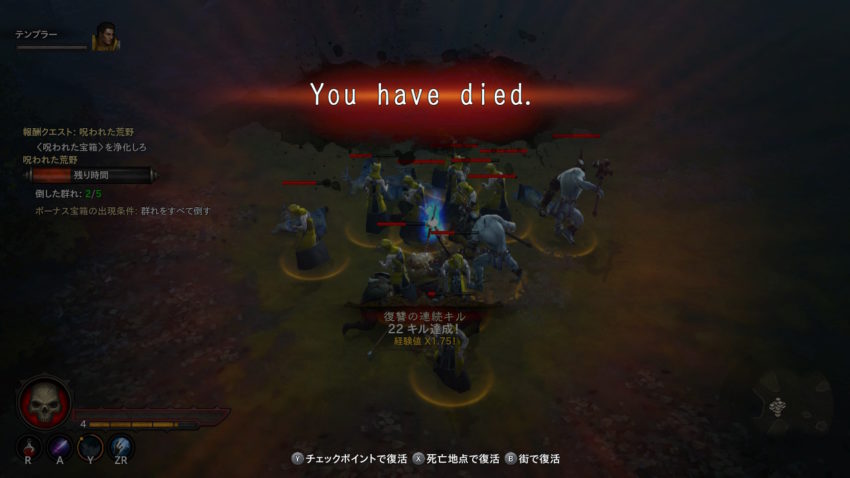ちなみに、これまで遊んできた他のクラスは、初期装備でもノーマル難度で死ぬようなことはほぼなかったんだけど……。