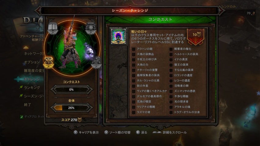 ほかにもあるけど、それはハードモード限定なのでお話にならない。シーズンジャーニーの条件を満たすにはコンクエストの中から3つをクリアーしないといけないから……。