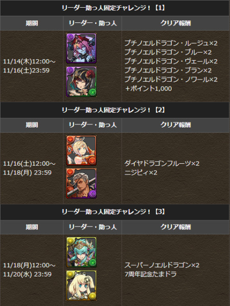 今回発表されたのは、スペシャルダンジョンに登場する“リーダー助っ人固定チャレンジ!”。過去に何度も実施されているダンジョンだが、それぞれにリーダーモンスターと助っ人モンスターがあらかじめ設定されたチームで挑戦するダンジョン。クリアーすると、ステキな報酬がもらえる。