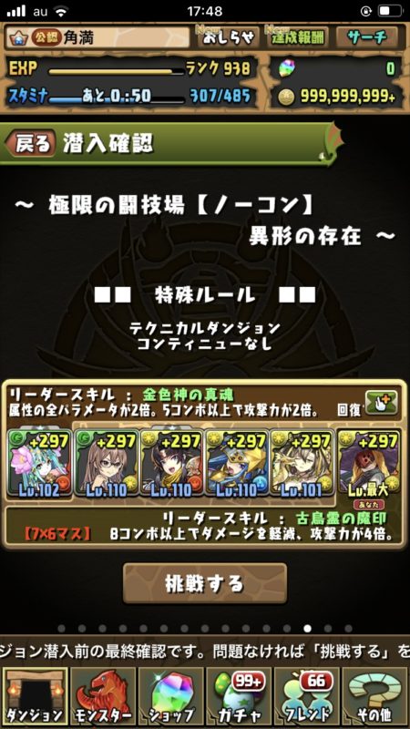 じつはいま期間限定で、極限の闘技場を条件付きクリアーすると潜在たまドラやら+ポイントなどがもらえるイベントが実施中。その中の異形の存在に関しては……条件付きクリアーで魔法石5個がもらえるという、超太っ腹なことになっていたのでありますよ!!