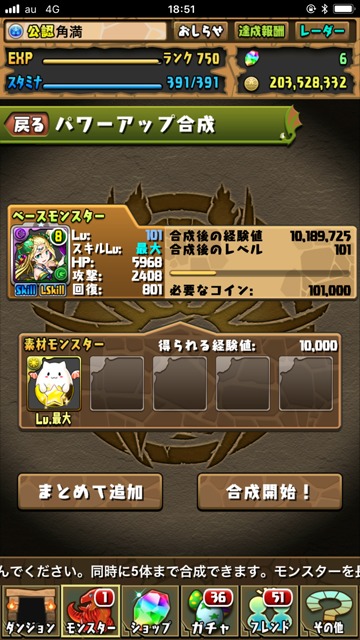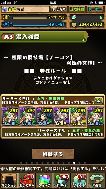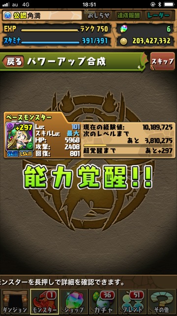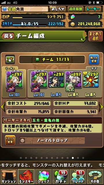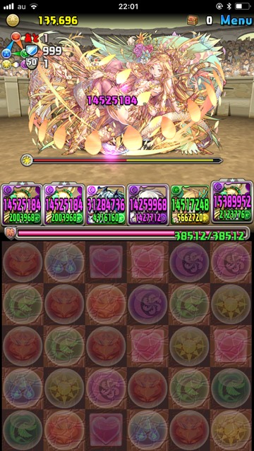シルヴィがいたところに、“此方なるものヨグ=ソトース”を入れた。このヨグは光属性なのはもちろん、覚醒スキルに追加攻撃、超追加攻撃を装備する上、スキルも回復ドロップの供給+HP回復、バインド回復と、世界に優しい仕様であった。しばらくはこのメンツで調整をしつつ、機が熟したら裏闘技場に挑もうと思う。