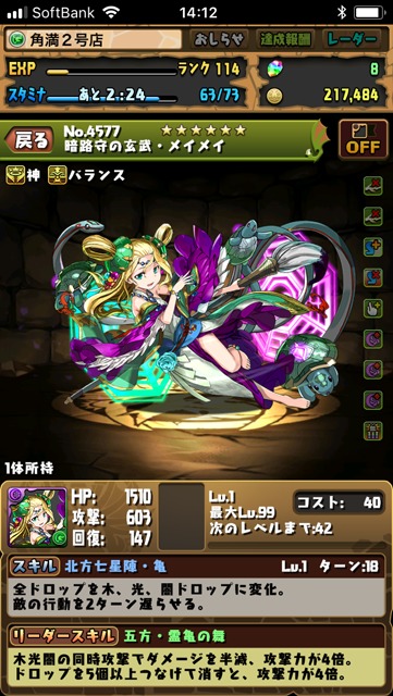 そんな、新たな旅の相棒はもちろん、闇メイメイこと“暗路守の玄武・メイメイ”である。現在、各所で品切れになっている拙著『読む!『パズドラ』~大塚角満の『熱血パズドラ部!』ベストセレクション~』に付いてくるモンスターで、ムックの付録とは思えぬほどのパワーを以って旋風を巻き起こしている。