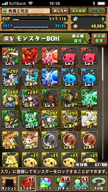 と、多少なりとも未来の話ができるんだけど、始めたばかりのデータだからウチのボックス、人(モンスターね)そのものの数が圧倒的に少ないのよ!!w ↓ホラw