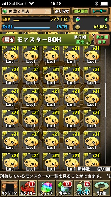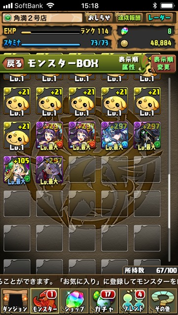 グンタイアリのように巣くっているのは、友情ガチャで排出されている+21ヒカリンたちねw そいつらを除き、戦力としてどうにかなりそうなのは15体に満たない!!w これでどうやって、闇メイメイ内閣を組閣すりゃいいんだ!!w