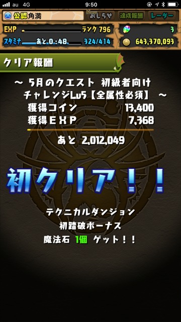「大塚さん、5月のクエストやりました? 今回、かなりの魔法石がクエストから回収できるので、オススメですよ!!」