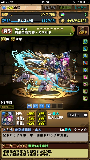 リストにいるのは“時女神・スクルド”と“未来の時女神・スクルド”なため、俺の手持ちの“刻水の時女神・スクルド”では候補に引っ掛からなかったってわけ。これを究極退化させれば、立派なトレード要員にできるぞ。