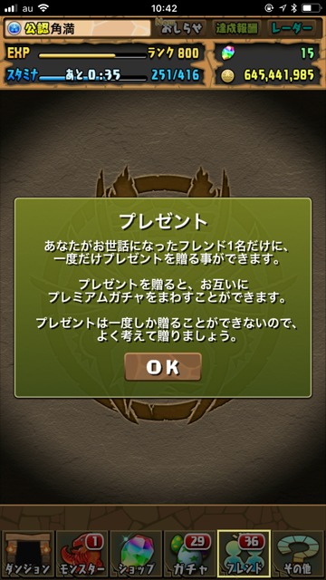 「そうだ! 俺、パズドラの“プレゼント”を放置したままだった。あの娘、ランクもまだ低かったから(300程度)、きっと役に立つだろう」