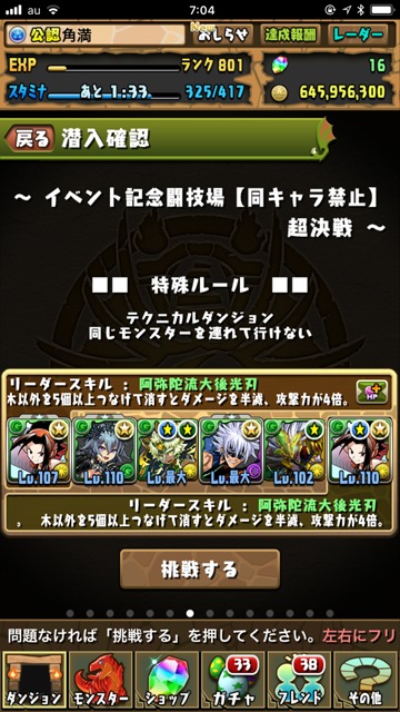 その足音はパズドラ本編の中からも聞こえてきていて、5月16日から4日間限定で、スペシャルダンジョンに“イベント記念闘技場【同キャラ禁止】”が口を開けているのである!