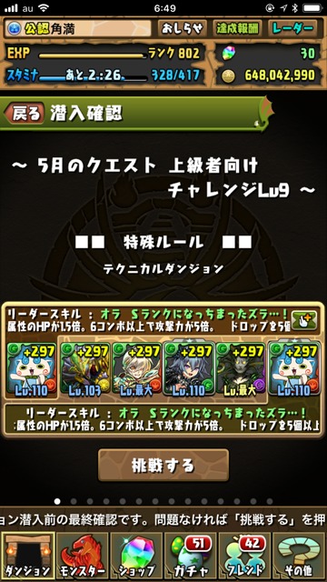 などなどの編成で臨んだが、どうやっても1階のベリアルすら倒せないよ母ちゃん!! 5月のクエストを完全制覇する直前で、まさかまさかチャレンジLv9が壁になるとは思わなかった。青天の霹靂とは、まさにこのことだわ。