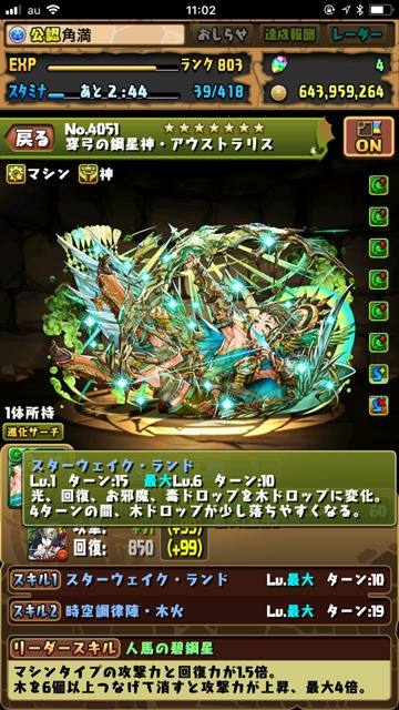 スキル“スターウェイク・ランド”は、“光、回復、お邪魔、毒ドロップを木に変化。4ターンの間、木ドロップが少し落ちやすくなる”というもの。光を消すうえに、ダメージ軽減に必要な回復まで潰してしまうという、まさかの“反エファ”のスキル持ちだった!!!