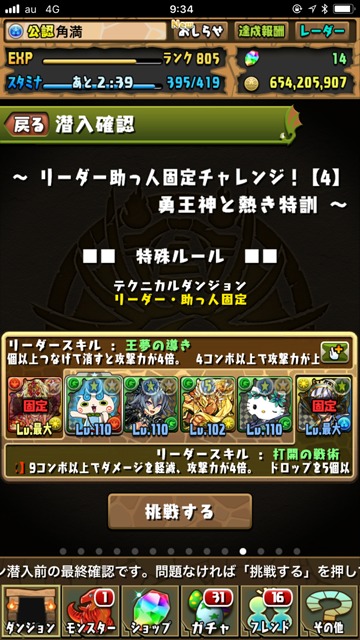 よし!!! リーダー助っ人固定チャレンジ4も、木属性でクリアーできたーーー!!!