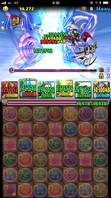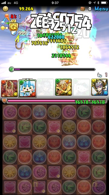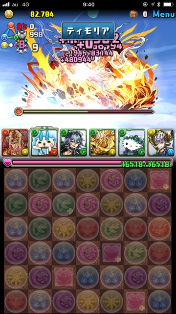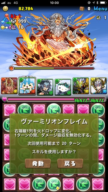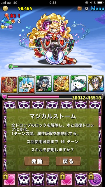 4Fのハマルは大量の毒ドロップを作りやがるので、ここでゼラキティのマジカルストームを発動。盤面を木と回復の2色にしてバチュン!!