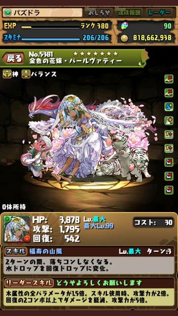 十字消しリーダーだけど7×6盤面だし、なによりドロップ操作時間が5秒も延長になるので、俺でもどうにかなる!!w しかもさっそく、抜け目のないパズドラMC娘のあいりがリーダーにしていたので、フレンドには困らなそうだしなww