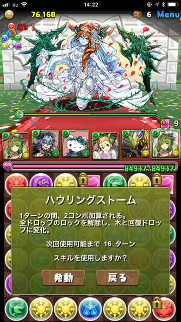 何がヤバいかって、ただでさえ十字消しが作りやすい7×6盤面になることに加え、ドロップ操作時間が5秒も延長になるのだ。……いやそれは究極進化前から変わらないんだが(汗)。使い始めてその効果の絶大さに気づいてしまったので、改めて明記させていただくのだよ。