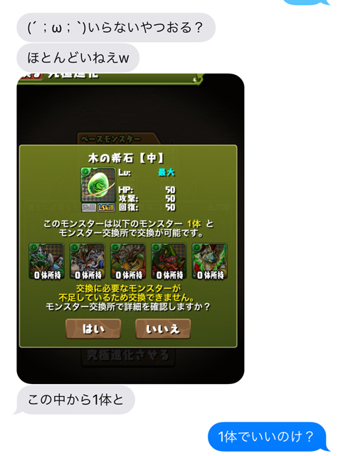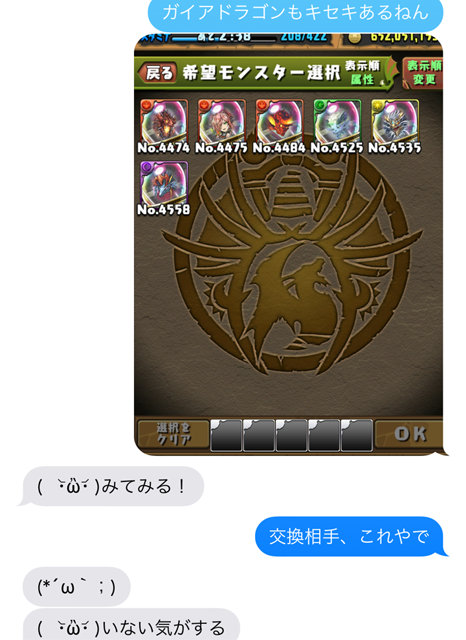 長年のブランクで素材をほとんど持っておらず、モンスターをぜんぜん進化させられないという罠!!! しかもオデドラとか、絶妙にメンドクセー素材を求めやがるものだから、言われたこっちも右往左往である。加えて、ガイアドラゴンの希石をたまたま持っていたのでトレードしようと思っても、