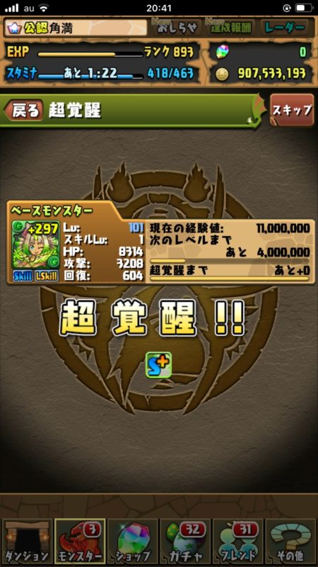 超覚醒は、スキブ+に。これでスキブ4個持ち!