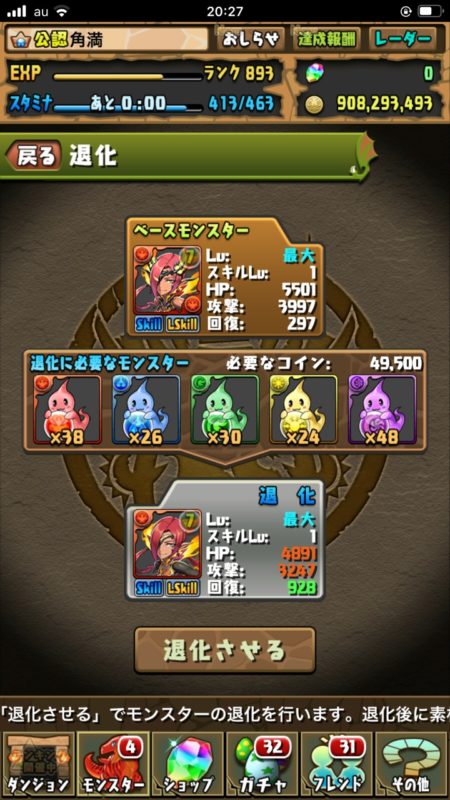 さあ、来ちゃったものは仕方がないので(うれしいくせに)、速攻で究極進化からのエクストラ強化を敢行した。