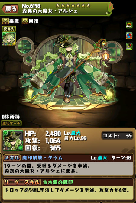 木属性の新フェス限、アルジェの性能はすばらしかった。変身後のリーダースキルは、