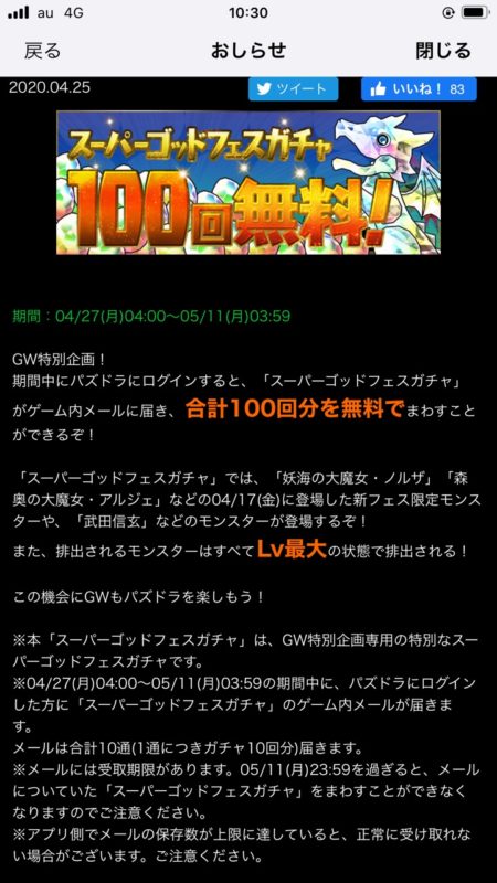 “本「スーパーゴッドフェスガチャ」は、GW特別企画専用の特別なスーパーゴッドフェスガチャです”