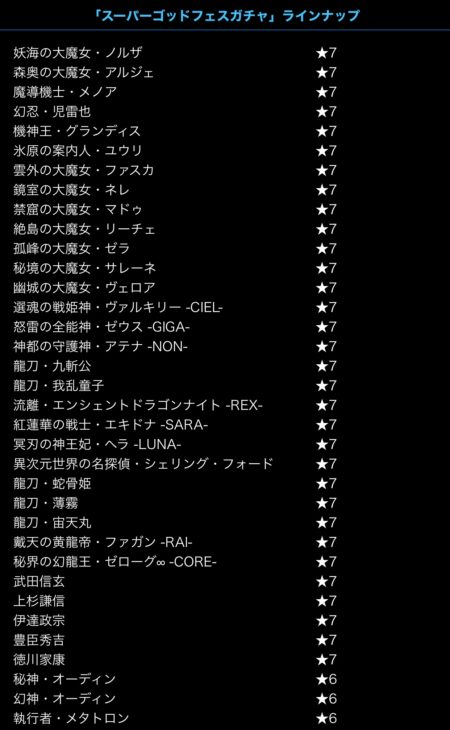 というわけで、うたぐりマナコをグリグリと動かしながら、このスーパーゴッドフェスガチャのラインナップページを開いてみた。