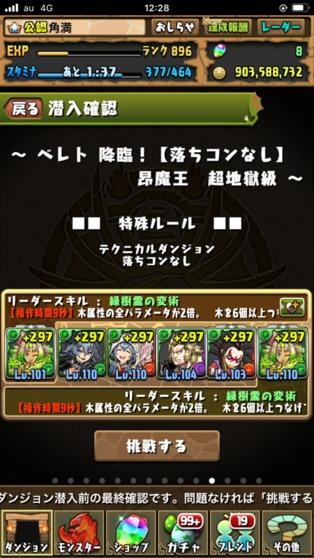新たな降臨ダンジョン“ベレト降臨!【落ちコンなし】”である。コレ、俺的には何が何でもクリアーして、ボスのベレトを持ち帰らないといけないのである。