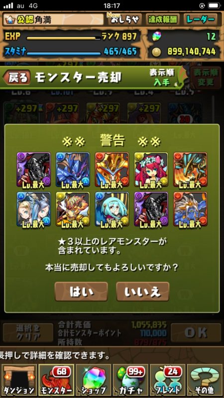 モンスターボックスを拡張したり、いらないモンスターを整理しないと残る30回分を回せなかったので、これを機に大幅なリストラを敢行。