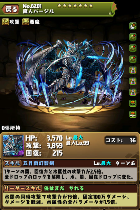 こりゃまた……w これはリーダースキルに追撃が付いている分、ダンテよりも使いやすいのでは……。バージル、いまから木属性に(以下略)。