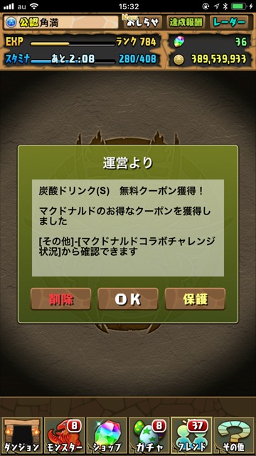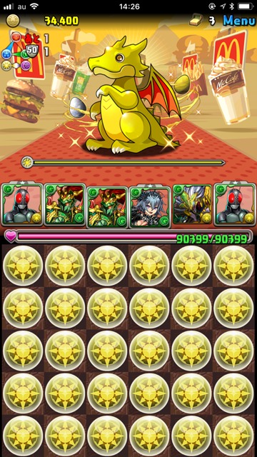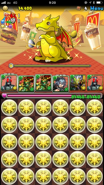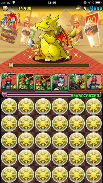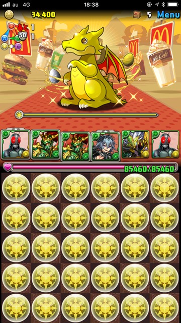 このマクドナルドコラボダンジョン、難度はメチャクチャ低い。おそらく、初心者でもガンガン回せるくらいだと思う(スタミナの問題はあるけどね)。