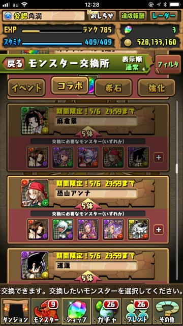まるで俺のモンスターボックスの中身を知っているかのように、見事に麻倉葉だけ交換素材が足らない!!!(怒) ほかの連中は余裕で交換できるってのに!!!><