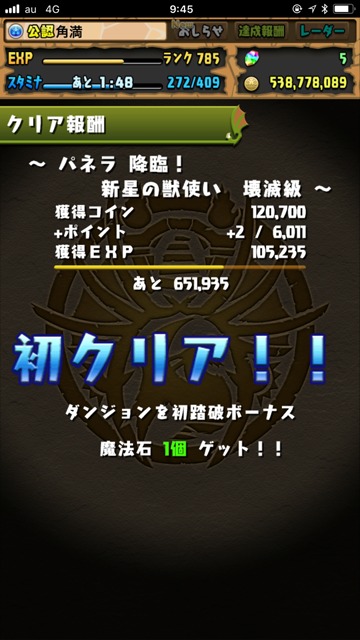 パネラ降臨の壊滅級も突破ぁぁぁああ!!!