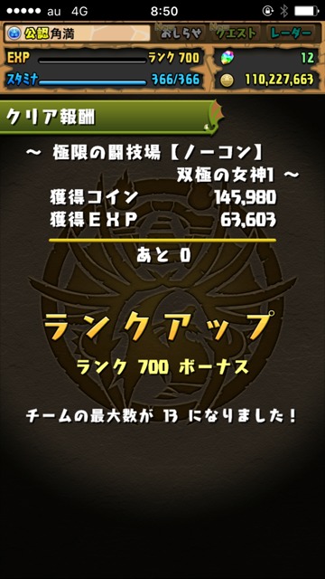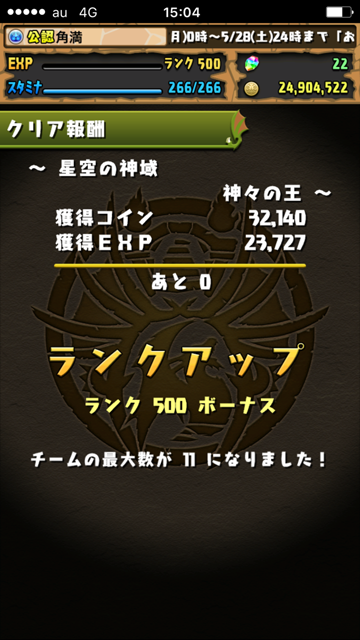 ランク500は、2016年5月28日に達成。確か、ガンホーフェスティバル2016開催時に、時を同じくしてこの区切りを迎えたんだよね。でもこの直後に愛猫のミュウを喪ってしまい、長いペットロスに突入してあんま当時のことを覚えていないんだよねえ……。