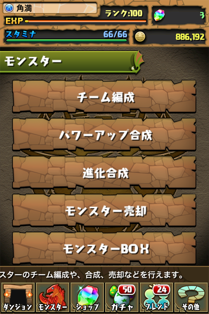 フレンドと、つぎのモンスターボックスはもっともっと増やしたいんだけど、無課金の限界があり……。魔法石が手に入ると、やっぱり優先順位的にガチャに向かわざるを得なくなり、結果、フレンドもモンスターボックスもじつに小さい箱のままというね……w でもそのかわり、たくさんの人が親友にしてくれているので、「使いたいモンスターのフレンドがいねええええ!!」という“パズドラあるある”とは無縁になりました。ありがたやありがたや!