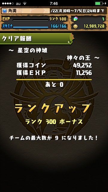 ランク300になったのは、2015年7月3日。パズドラへのモチベーションが劇的に上がったモンスター、ヴェルダンディを引いたころで、この時期から難度の高いダンジョンにガンガン挑み始めたと記憶している。