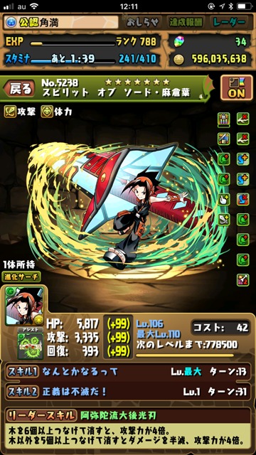 というわけで俺は迷わず、麻倉葉のスキル“なんとかなるって”を使用。これで1ターンのあいだ、2コンボ加算だ。闇と火を木に、水を回復に……という盤面調整もかかったおかげで、かな~りコンボを組みやすい状況ができたぞ。これで盤面8コンボさえ作れれば……余裕の満天級クリアーだな!!