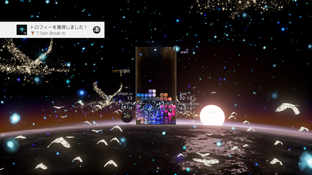 そして、ぶっちゃけて書くと俺がPS VRから遠ざかっていた最大の理由は“酔ってしまうから”だったのだが、この『テトリス エフェクト』に関しては無問題。ぶっ続けで遊んでも、いまのところ酔いの感覚はゼロである。俺の三半規管だと、これくらいのほどよいVRがちょうどいいのかもしれない。360度がゲーム世界のRPGとかアクションゲームもやりたいんだけどねぇ……。