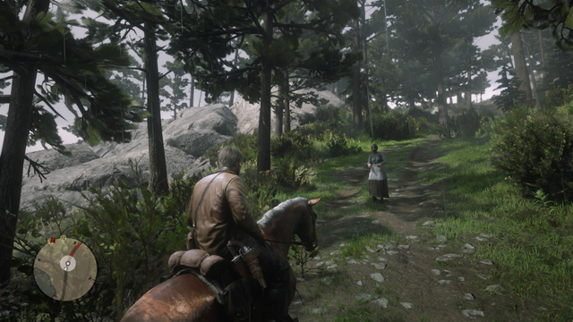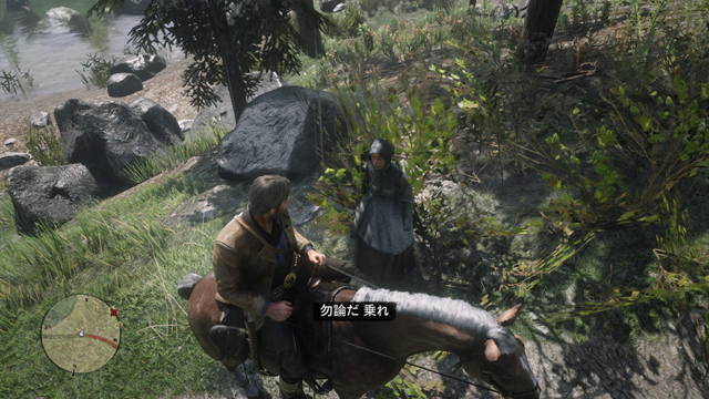 こういうとき、『レッド・デッド・リデンプション』シリーズでは往々に犯罪が起こる。たいがいは、助けを求めてきた女性にデレデレになったところで、